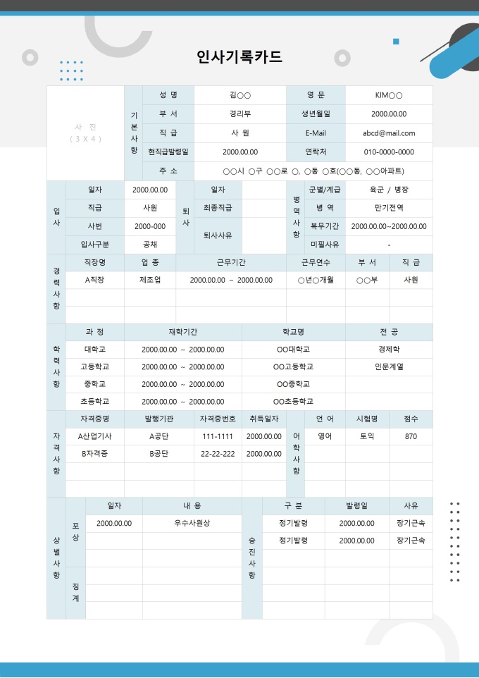 [입사 패키지] 인사기록카드