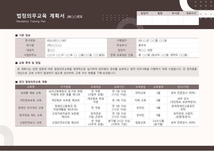 연간 법정의무교육 계획서 [법정의무교육 패키지]