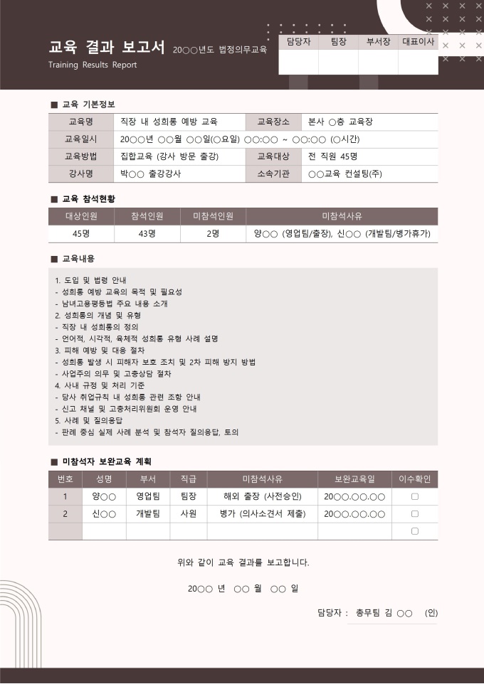 교육 결과 보고서 [법정의무교육 패키지]