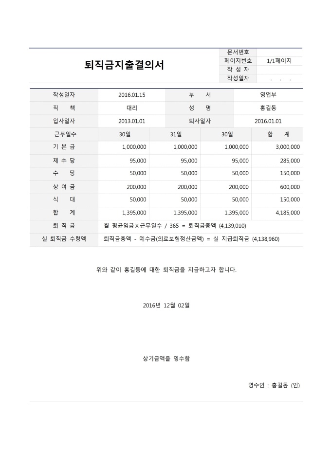 수당 지급 신청서