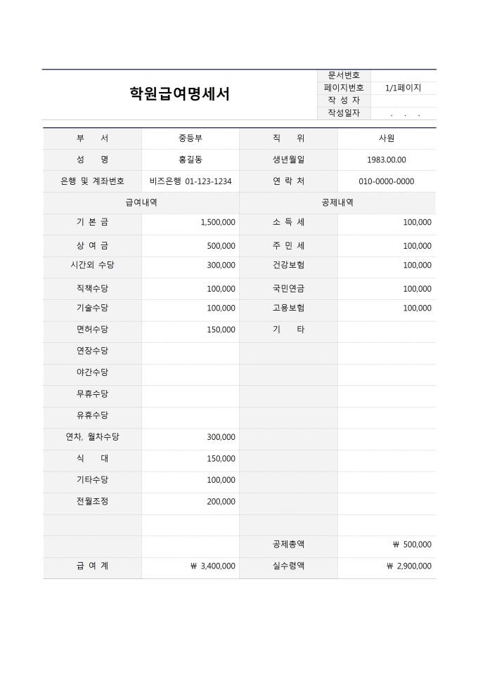 기본 급여명세서(작성방법 포함)