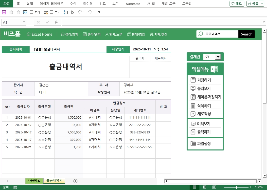 출금내역서